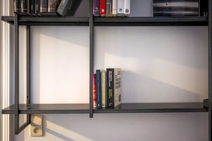 De lichtbak werd verwerkt in de boekenkast om deze bijzondere herinnering een plaats te geven in het interieur.
